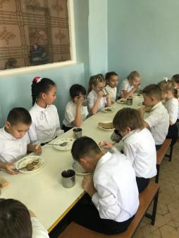 • Столовая, общей площадью 51,8 кв., имеет обеденный зал на 60 посадочных мест. Имеются складские помещения общей площадью 51,8 кв.м, комната для хранения продуктов (12 кв.м.), моечная (6,7 кв.м.), кухня (33,1кв.м.). Обеденный зал: - 16 комплектов (стол+4 стула), - 3 раковины для мытья рук. Оснащение пищеблока: 2 электроплиты, 1 жарочный шкаф, 2 водонагревателя, 2 морозильных ларя, 4 холодильника, 1 мясорубка, 4 стола разделочных, 2 стеллажа для посуды.